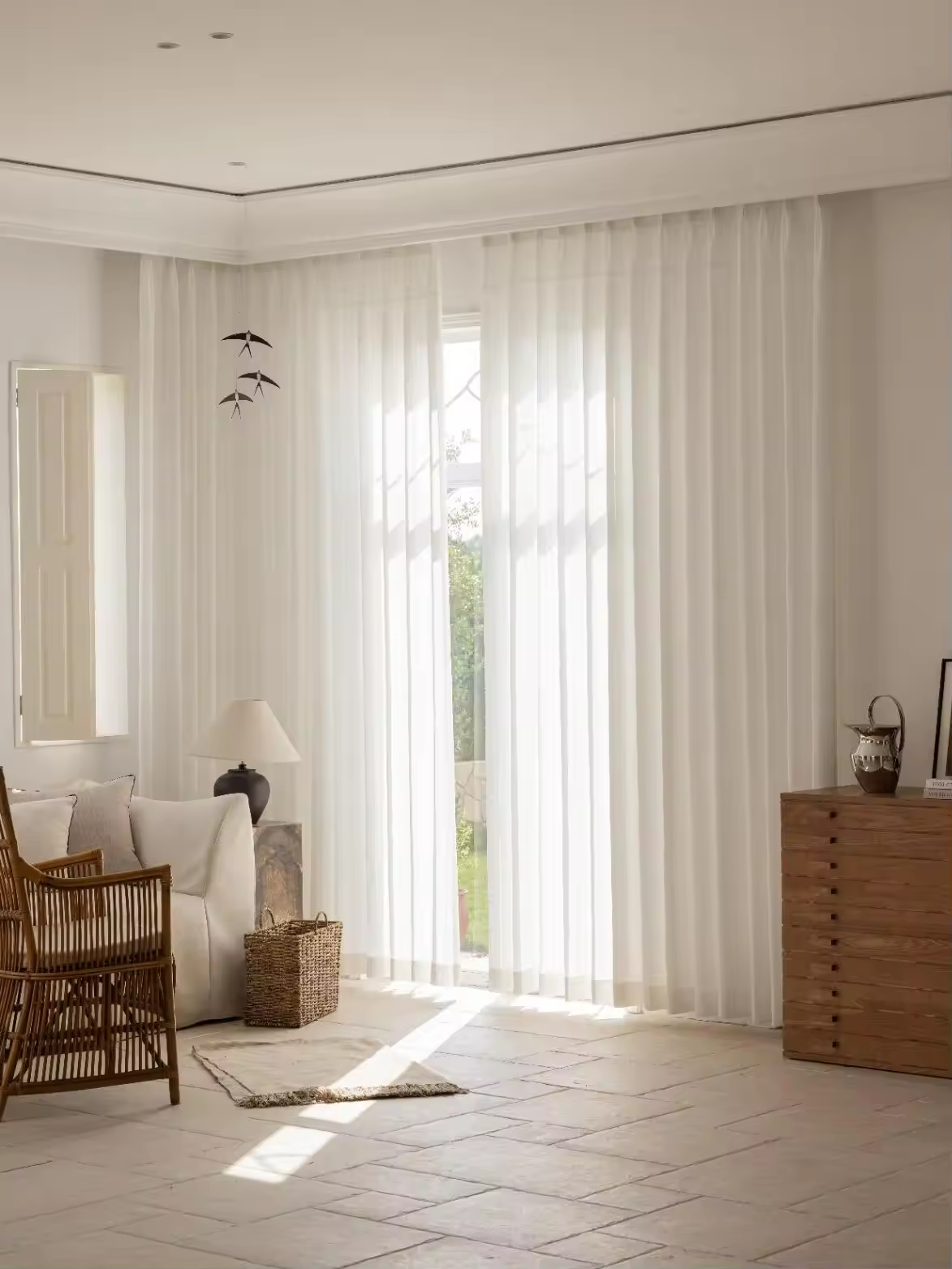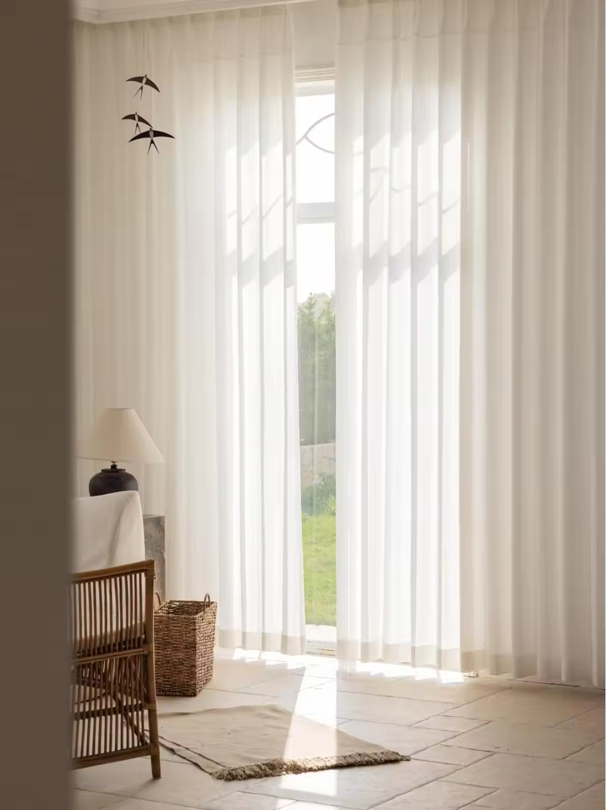 White Sheer Curtains for Living Room - Light Filtering Voile Window Drapes, Semi-Transparent