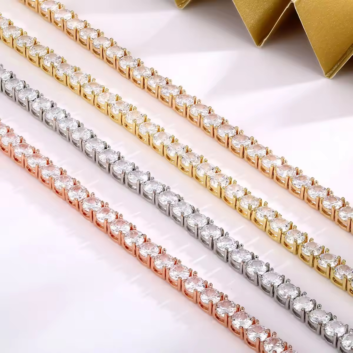 Custom 925 Silver Brass 5A Cubic Zirconia 4MM Tennis Bracelet Chain Copper Bracelets for Women for Girls