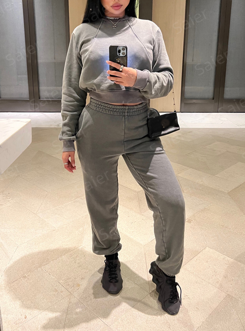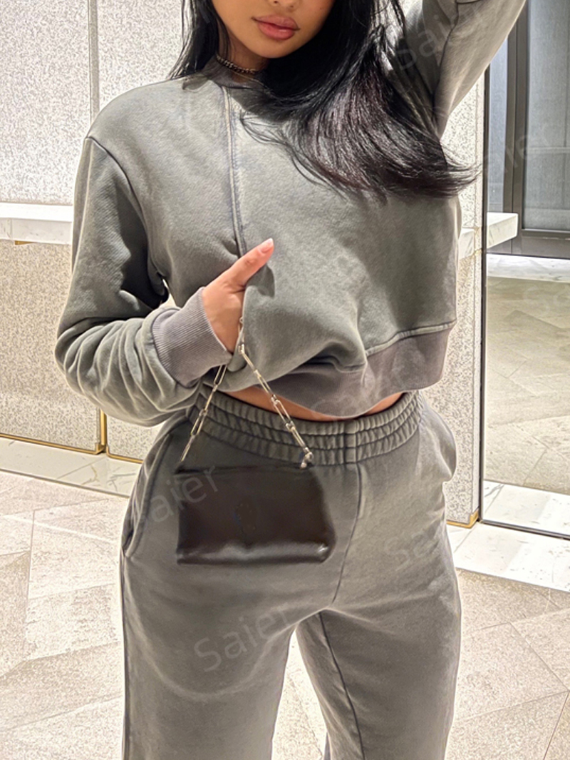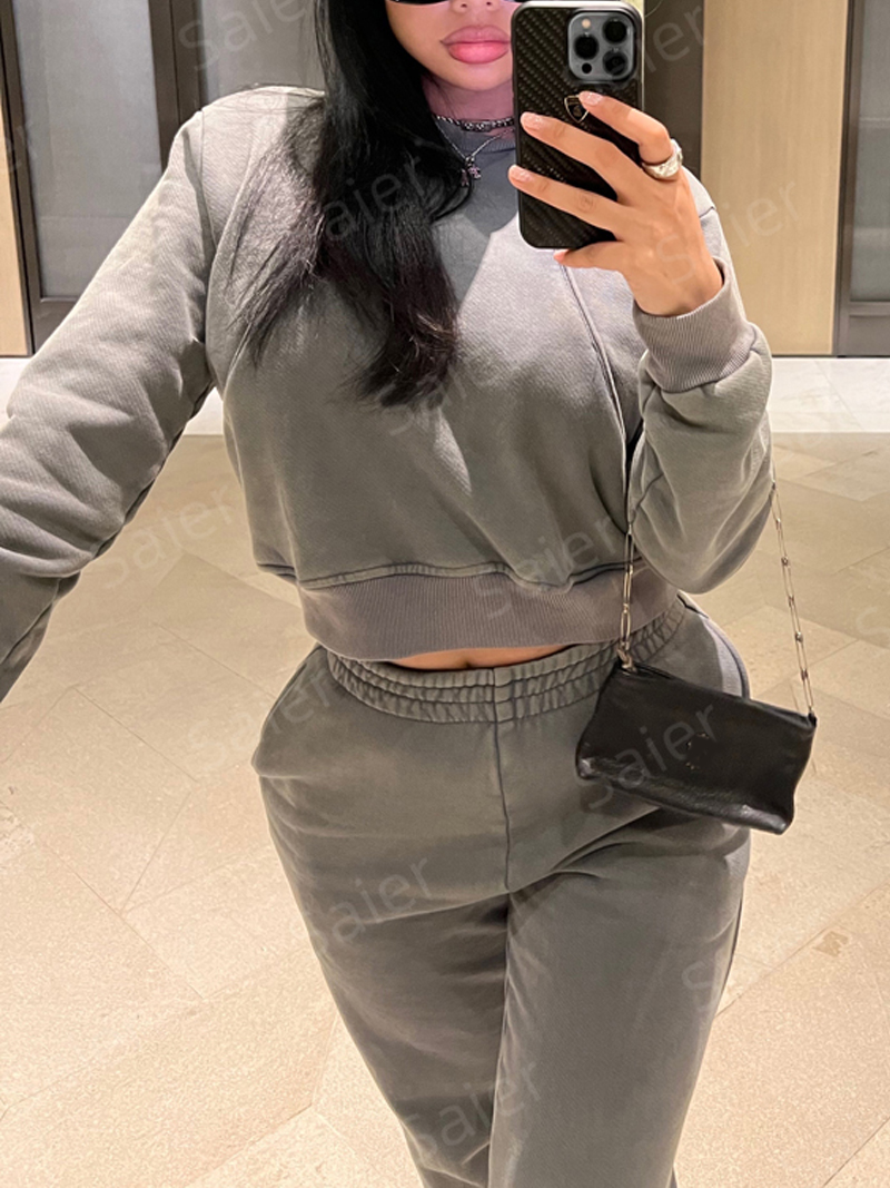 Fall Clothing For Women Solid Color Sweat Sets Ladies 2 Piece Long Sleeve Crop Outfit Winter Clothes 2023