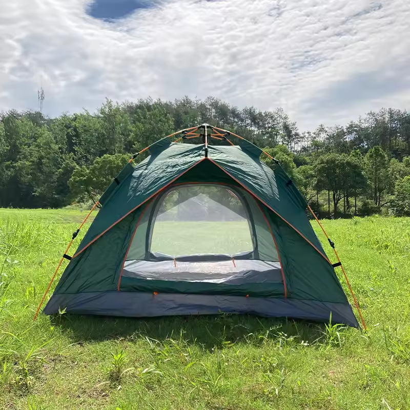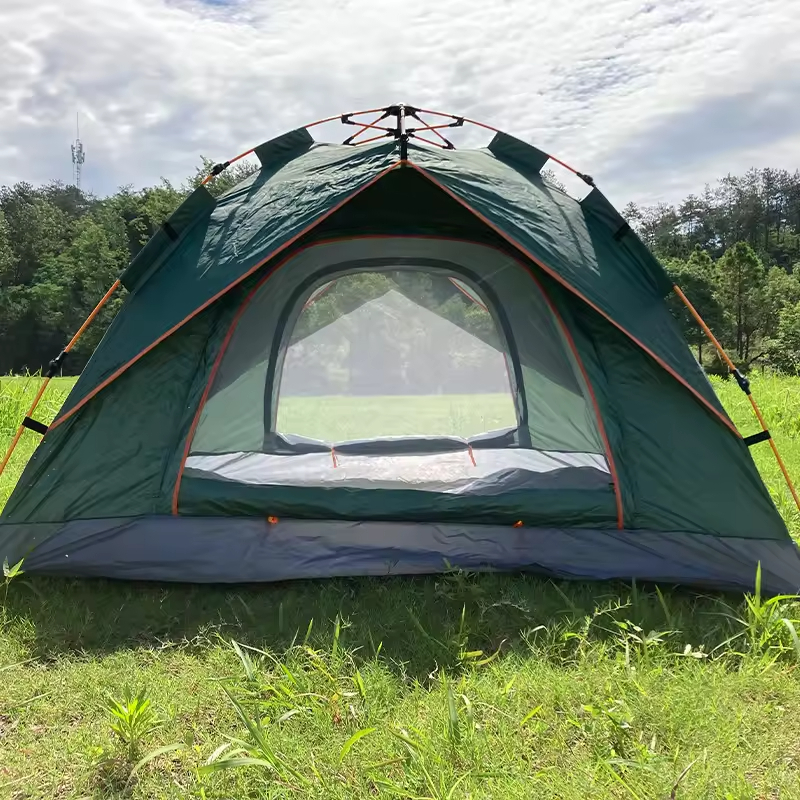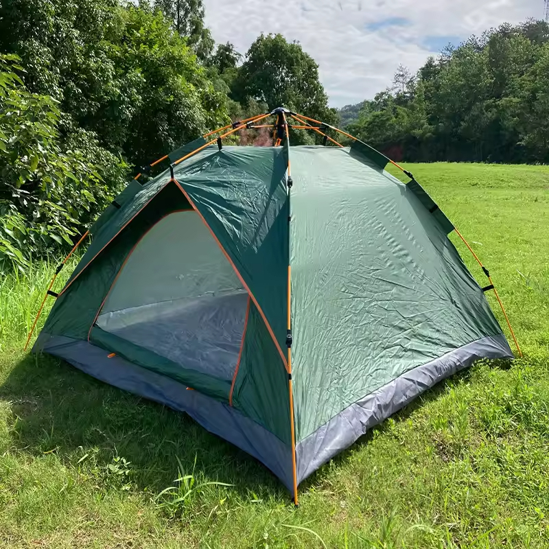Hot Selling Single-Layer Automatic Instant Tent Waterproof Canvas Camping Pop-Up Tent with Fiberglass Frame for Families
