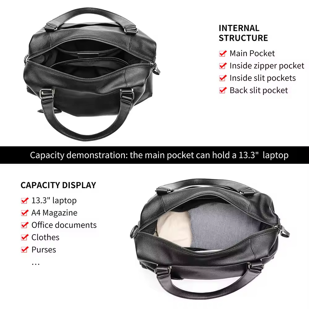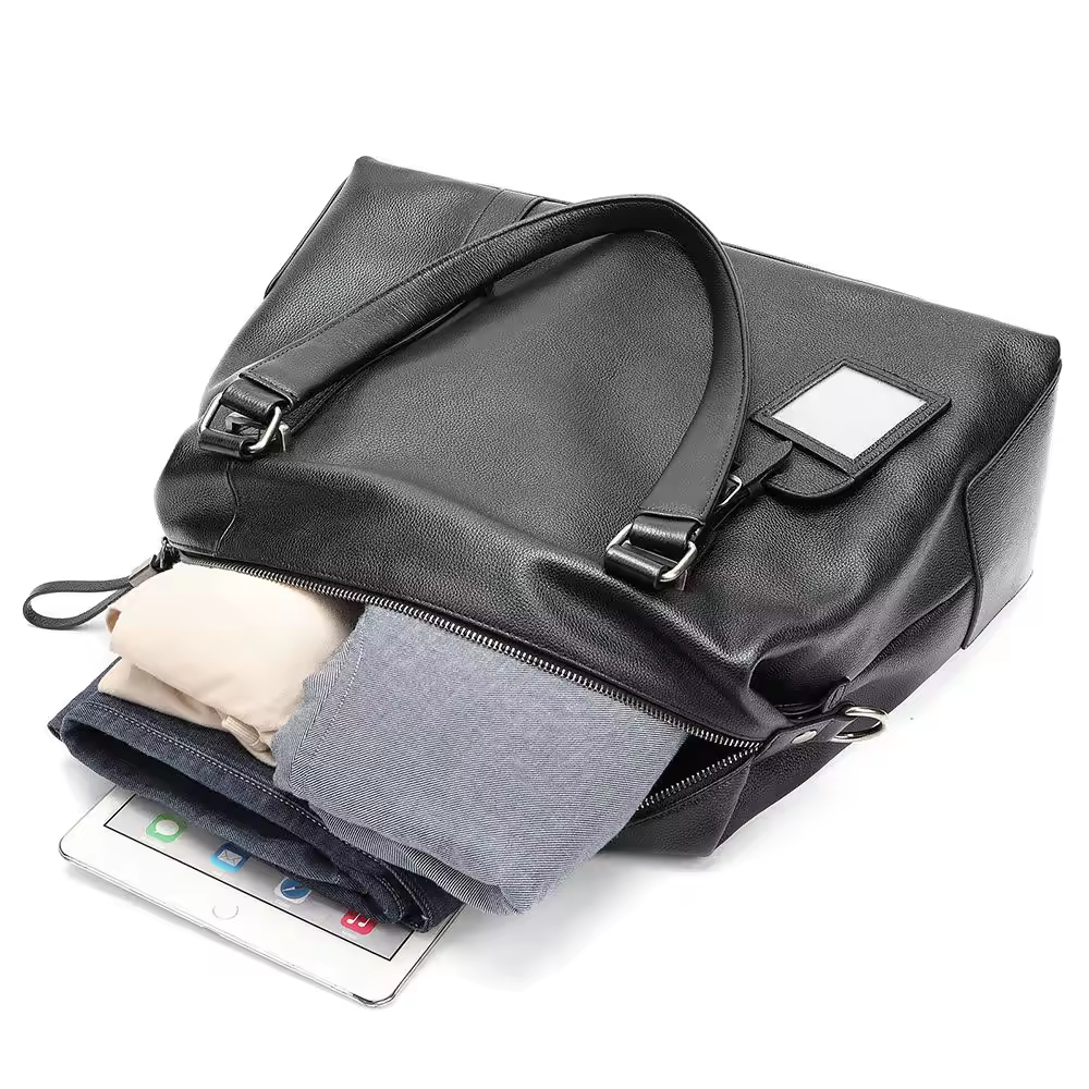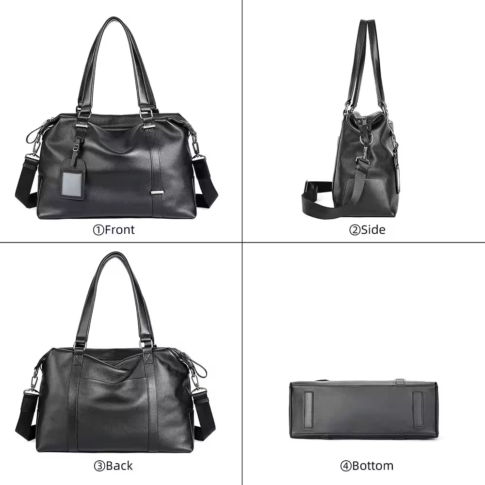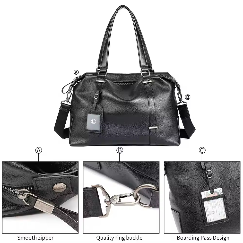 Men Waterproof Sports Gym Bag with Luggage Tag Weekender Overnight Travel Bags Genuine Leather Duffle Bag for Men