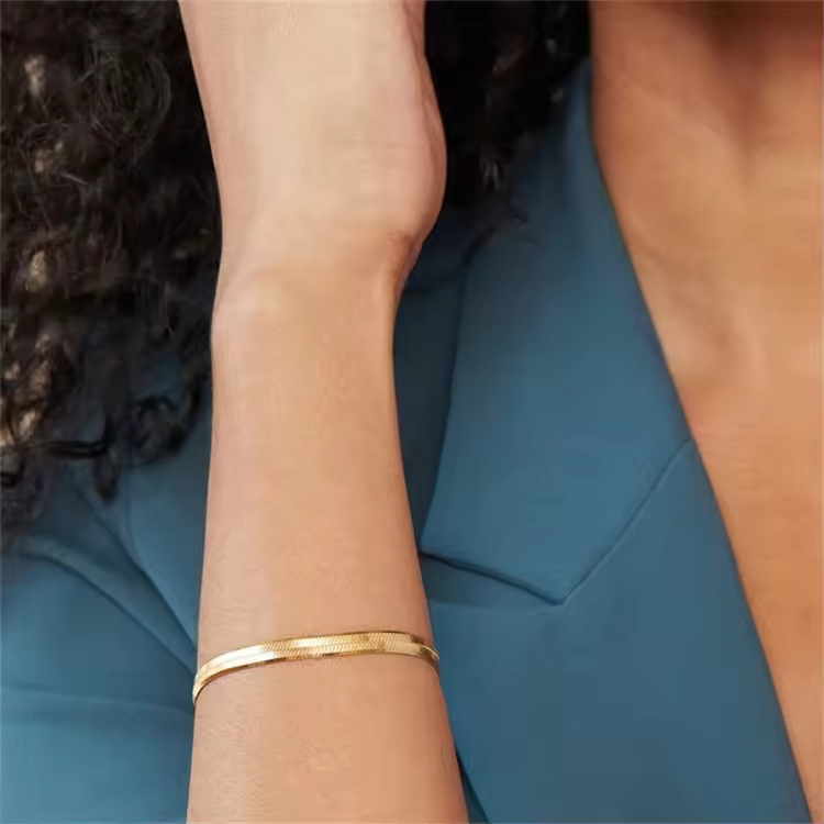 Minimalist Gold Plated Stainless Steel Geometric 5mm Herringbone Snake Chain Bracelets for Women