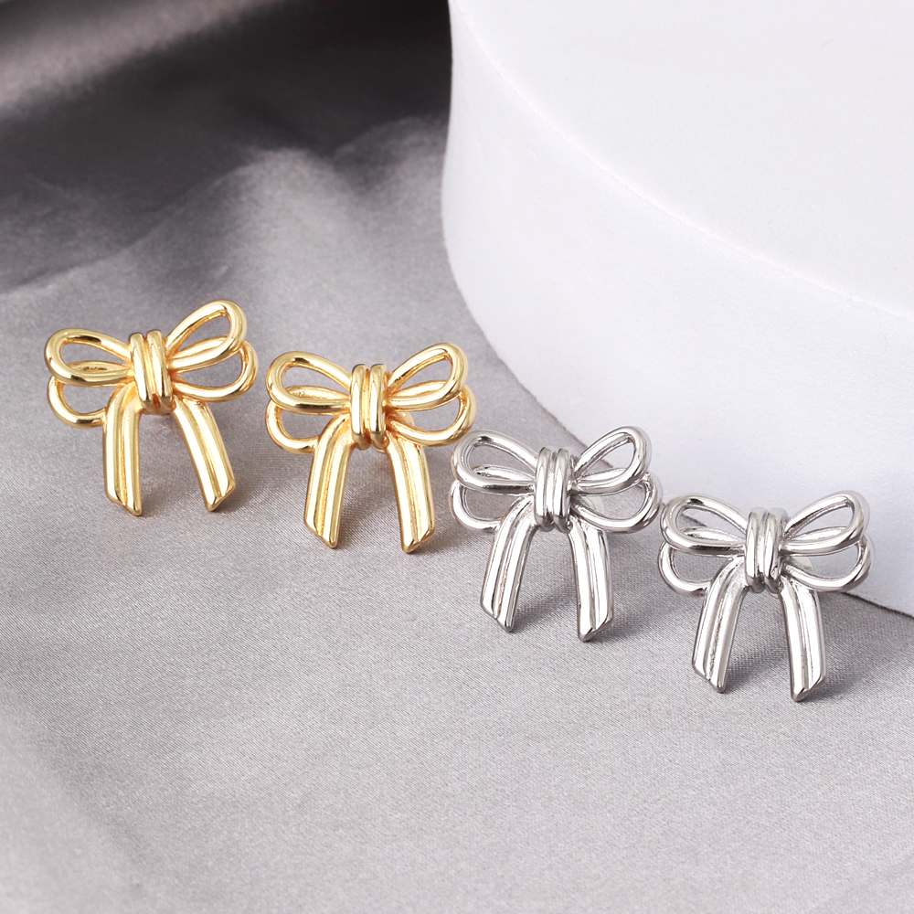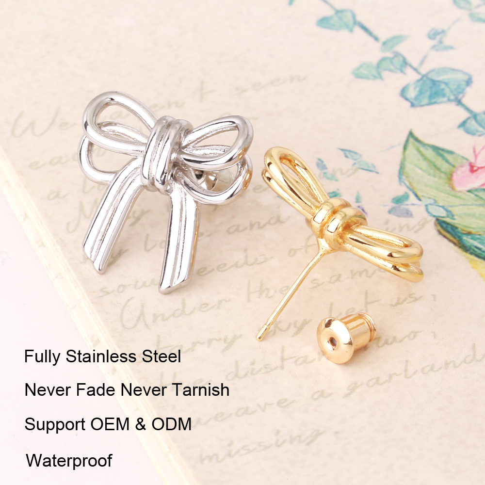 New Arrival Women Fashion Jewelry Gold Plated Elegant Bow Knot Earring Minimalist Stainless Steel Bow Stud Earring