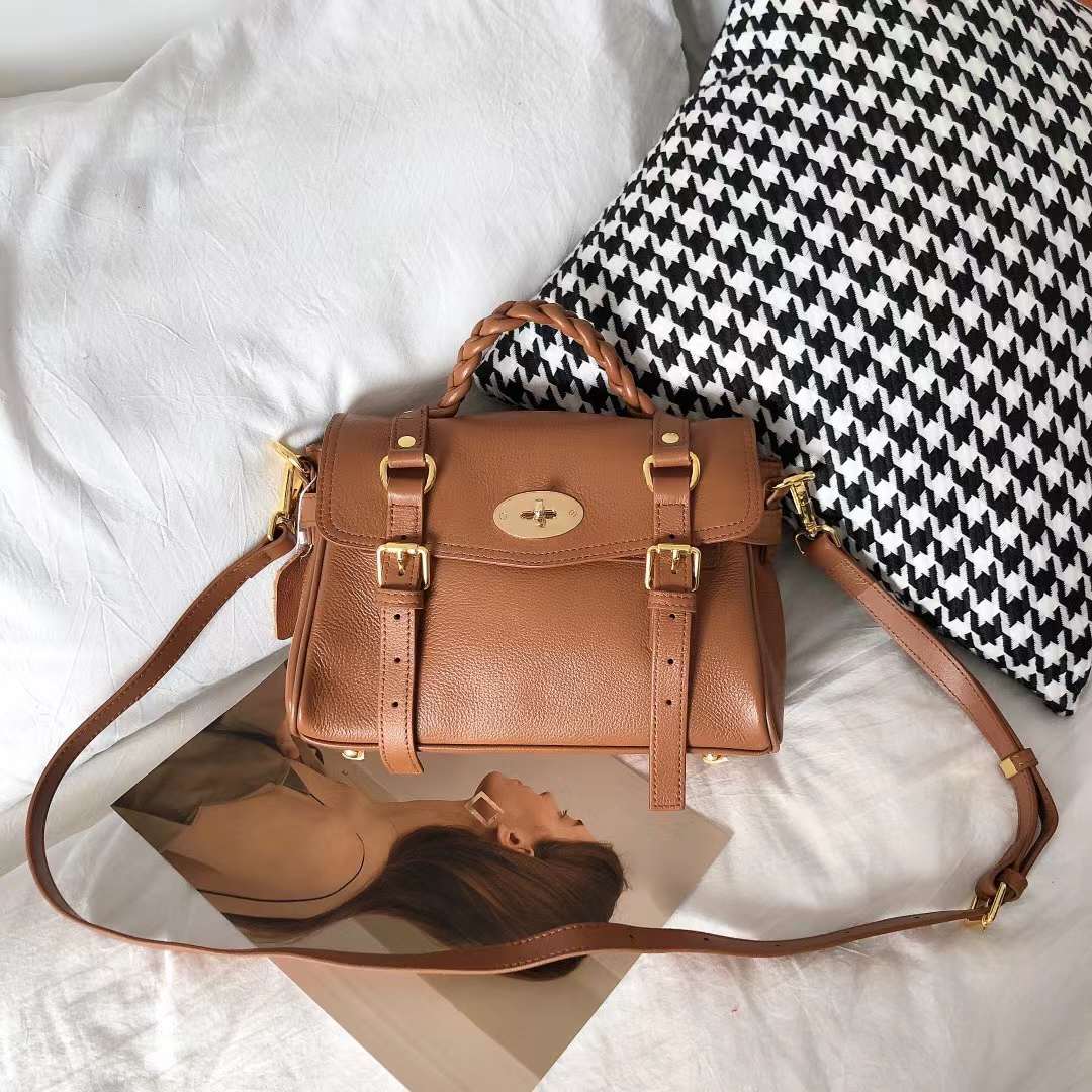 Classic satchel women bag genuine leather adjustable shoulder straps Inclined shoulder women bag
