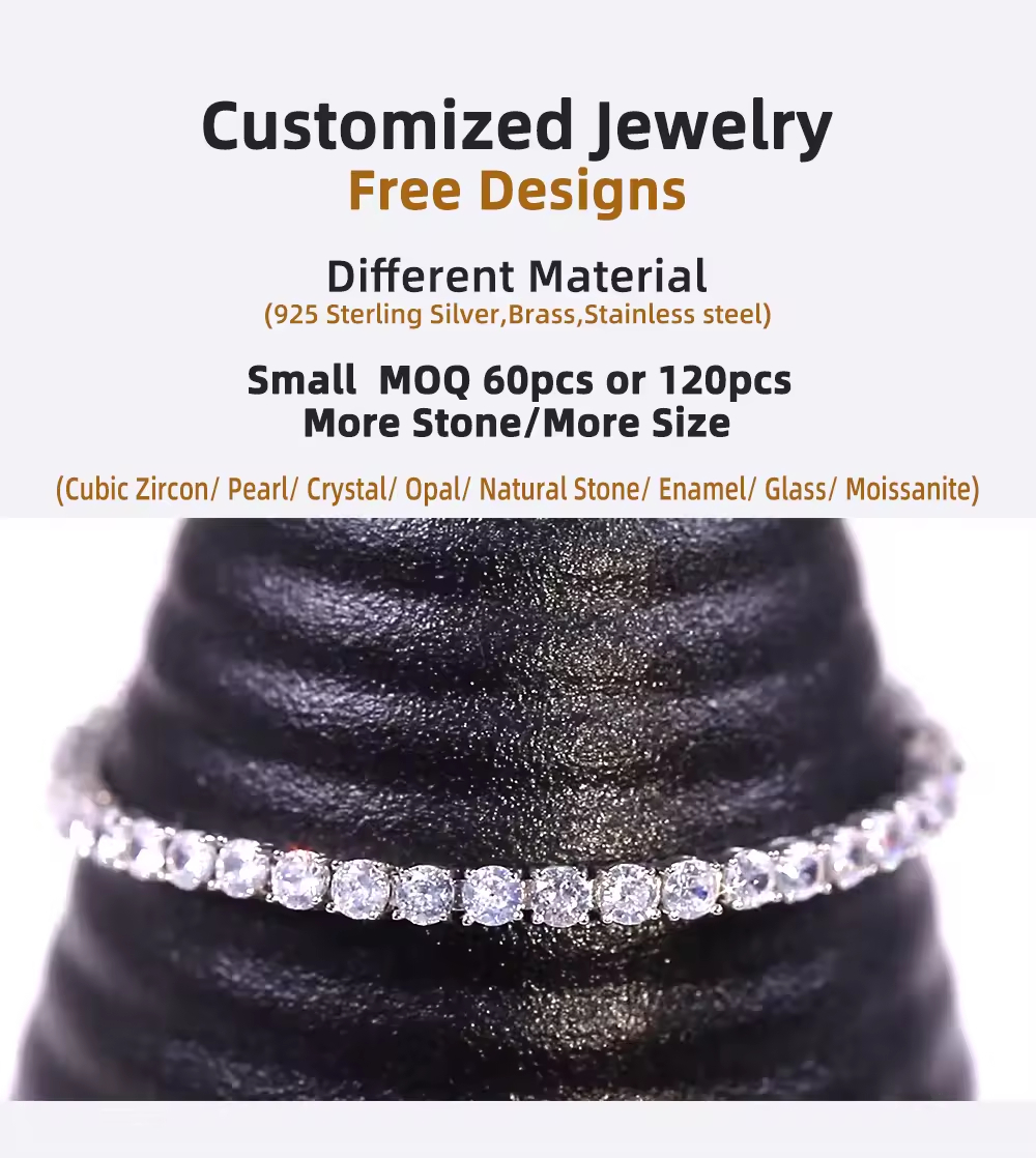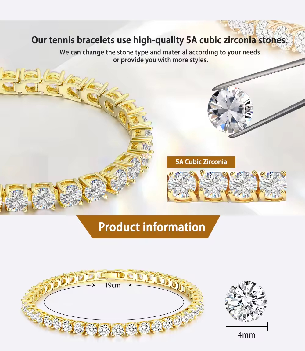 Custom 925 Silver Brass 5A Cubic Zirconia 4MM Tennis Bracelet Chain Copper Bracelets for Women for Girls