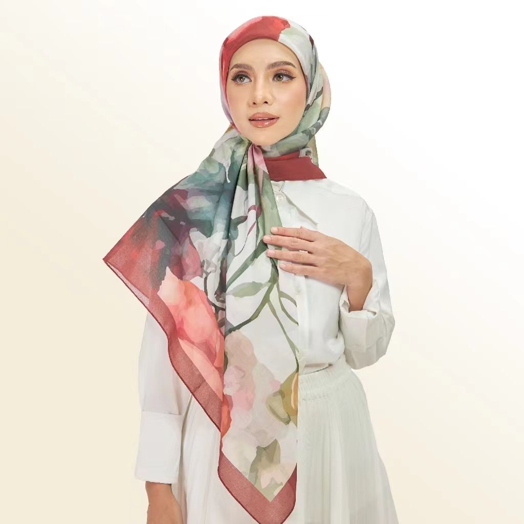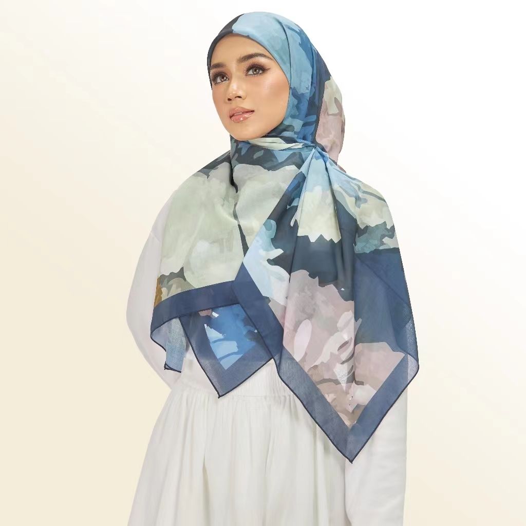 Custom cotton voile printed square hijab cotton voile soft cotton linen viscose headscarf hijab tudung bawal