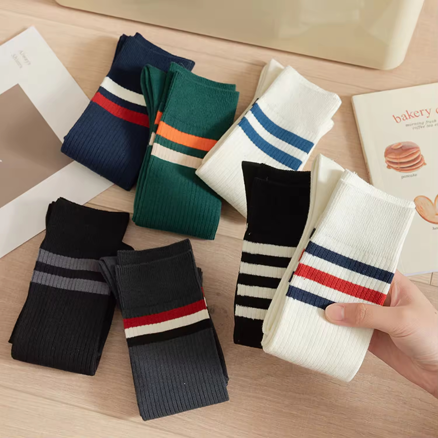 Custom Logo Cotton Socks Women's Winter Striped Long Socks Warm Thick High Socks for Girls Below Knee Vietnam Factory