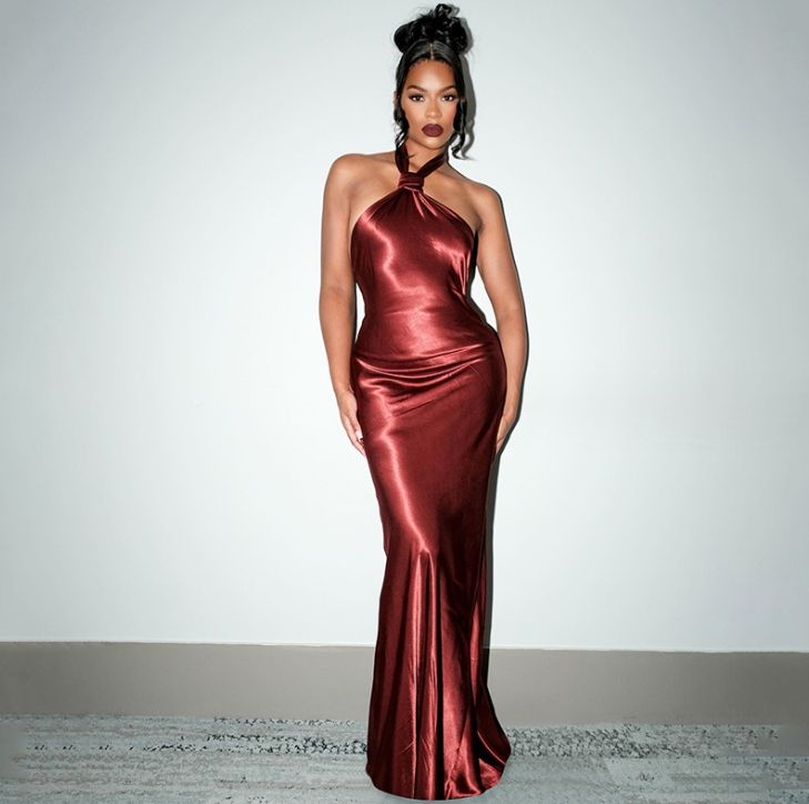 Fashion Women's Clothing New Lace Up Neck Hanging Open Back Wholesale Sexy Modest Evening Dress