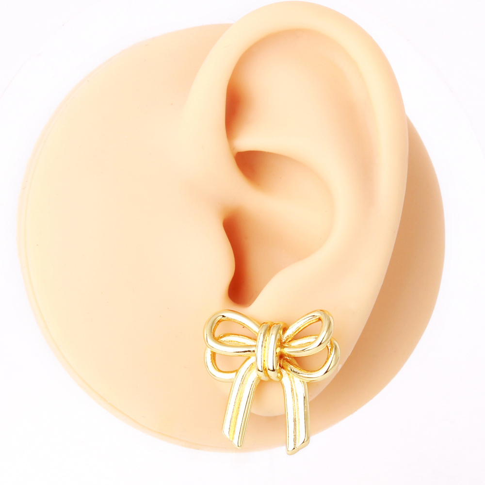 New Arrival Women Fashion Jewelry Gold Plated Elegant Bow Knot Earring Minimalist Stainless Steel Bow Stud Earring