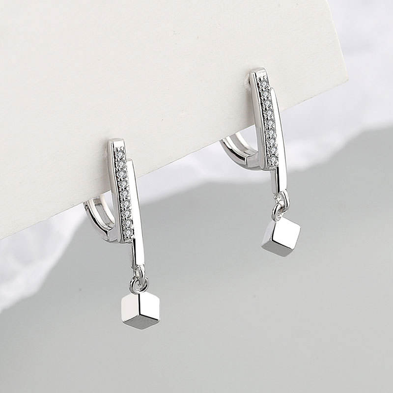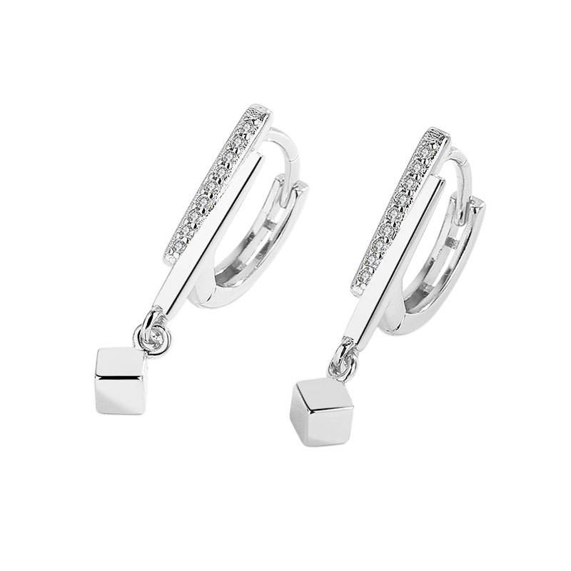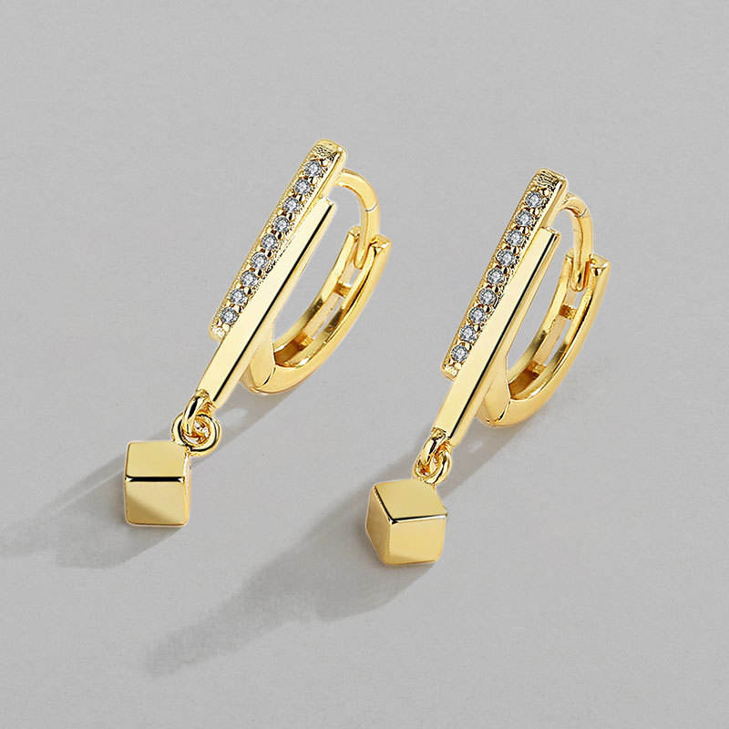NEW Small Hoop Earrings Square Charms Gold Color Hoop Earrings for Women Ladies Minimalist Jewelry