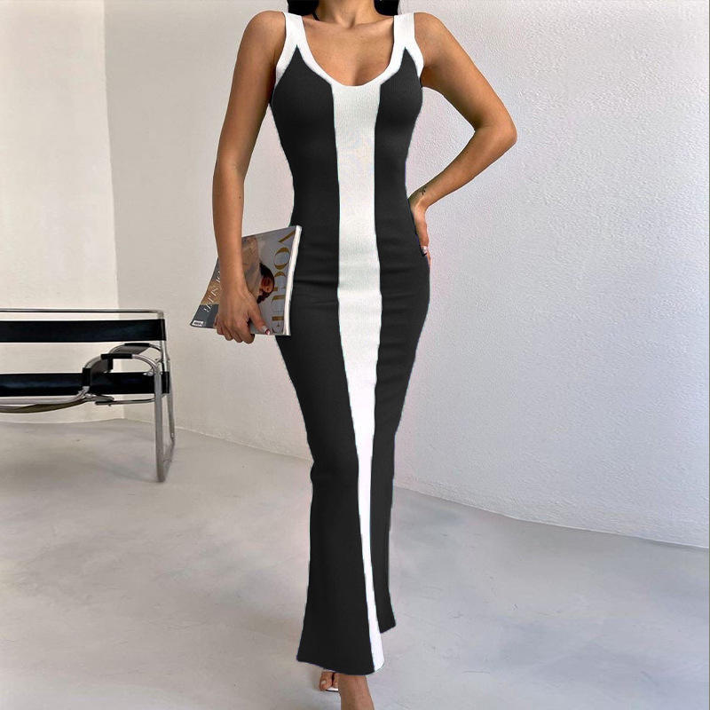 Wholesale Fashion sexy Sleeveless Stitching Color Oversize Women Clothing Skinny Slip Dress