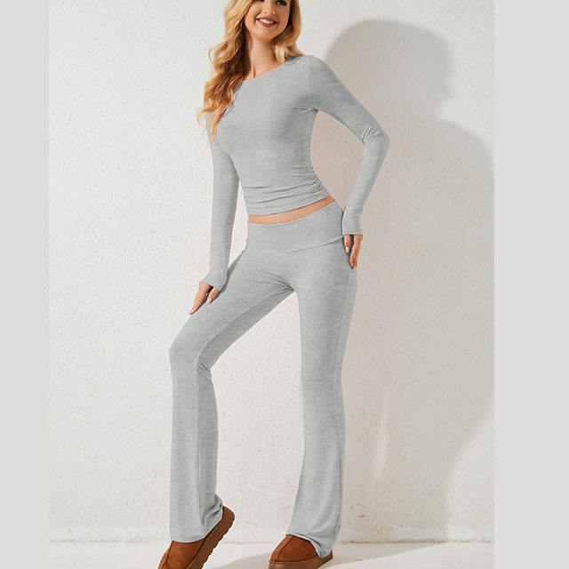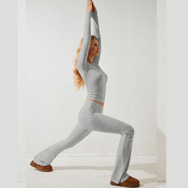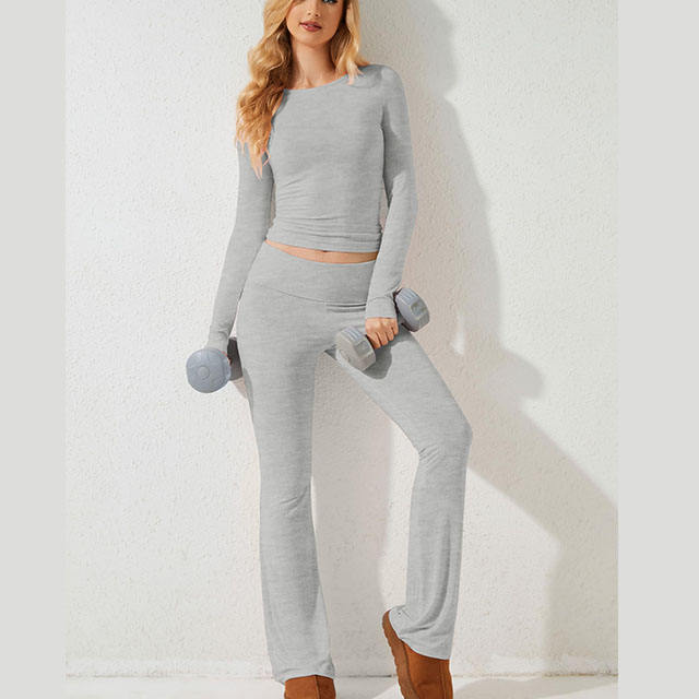 women's sets Crop Tee and Low Rise Flare Pants hot sale spandex four piece set sport yoga suit